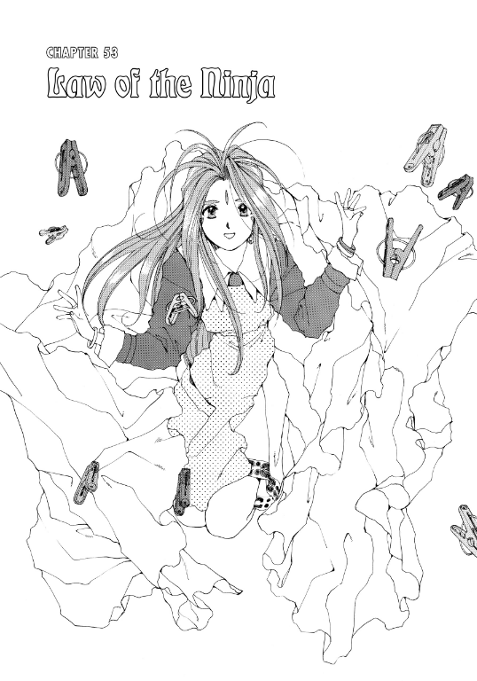 A cabal of ninjas has sentenced Kodama to death, and Kodama feels a chill in her soul as she sits on Belldandy's shoulder. Belldandy is worried about her and offers to give her some hot tea after Kodama claims she's feeling under the weather. Unbeknownst to them, another tiny ninja is watching them nearby, determined to eliminate Kodama according to the ninja code, which forbids forsaking the ninja ways.
