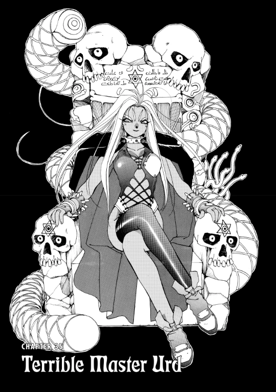 Having embraced her demonic heritage and becoming the Lord of Terror, Urd launches an attack on the temple.